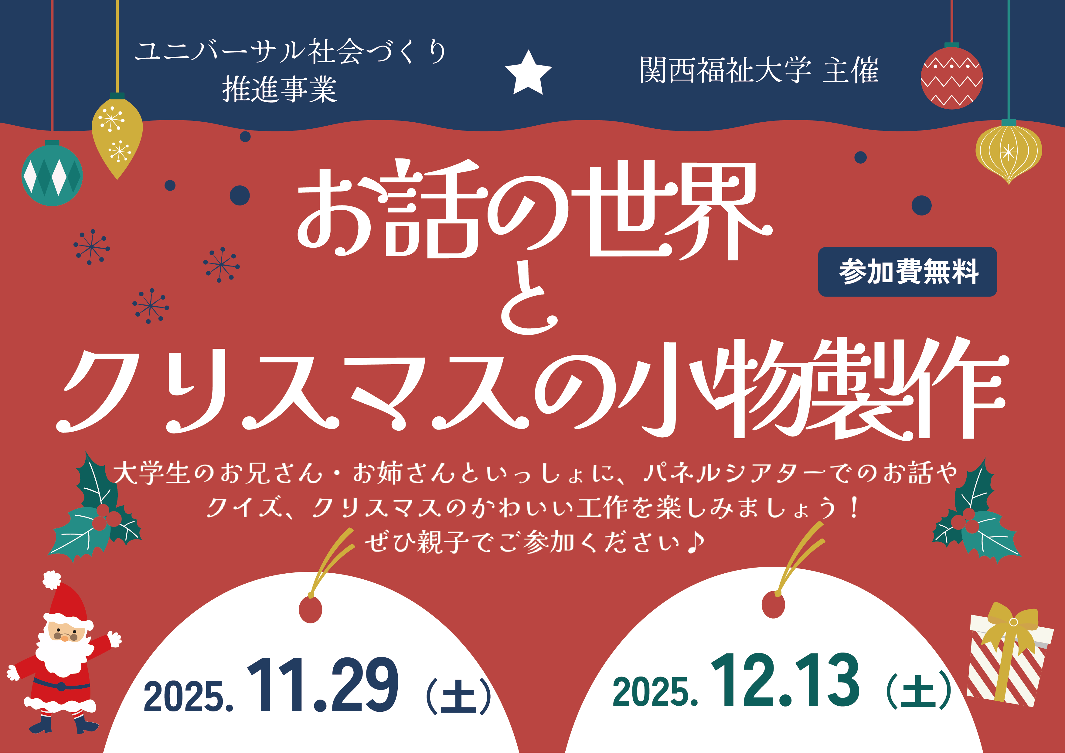 ユニバーサル社会づくり「お話の世界とクリスマスの小物製作」を開催します