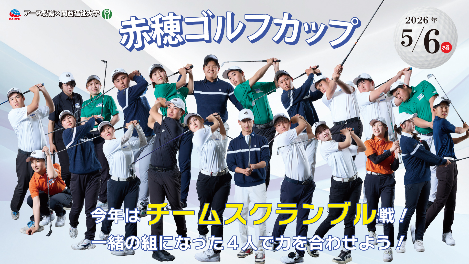 ゴルフを通じた交流とジュニア世代の育成・競技普及、そして赤穂市の地域振興を願い、アース製薬と関西福祉大学、兵庫県プロゴルフ会の共催でコンペを開催します。第3回大会となる今年はチームスクランブル戦!