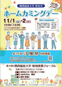 2025年11月1日(土)・2日(日)の2日間、関西福祉大学大学祭「第29回 汐風祭」を開催します。
