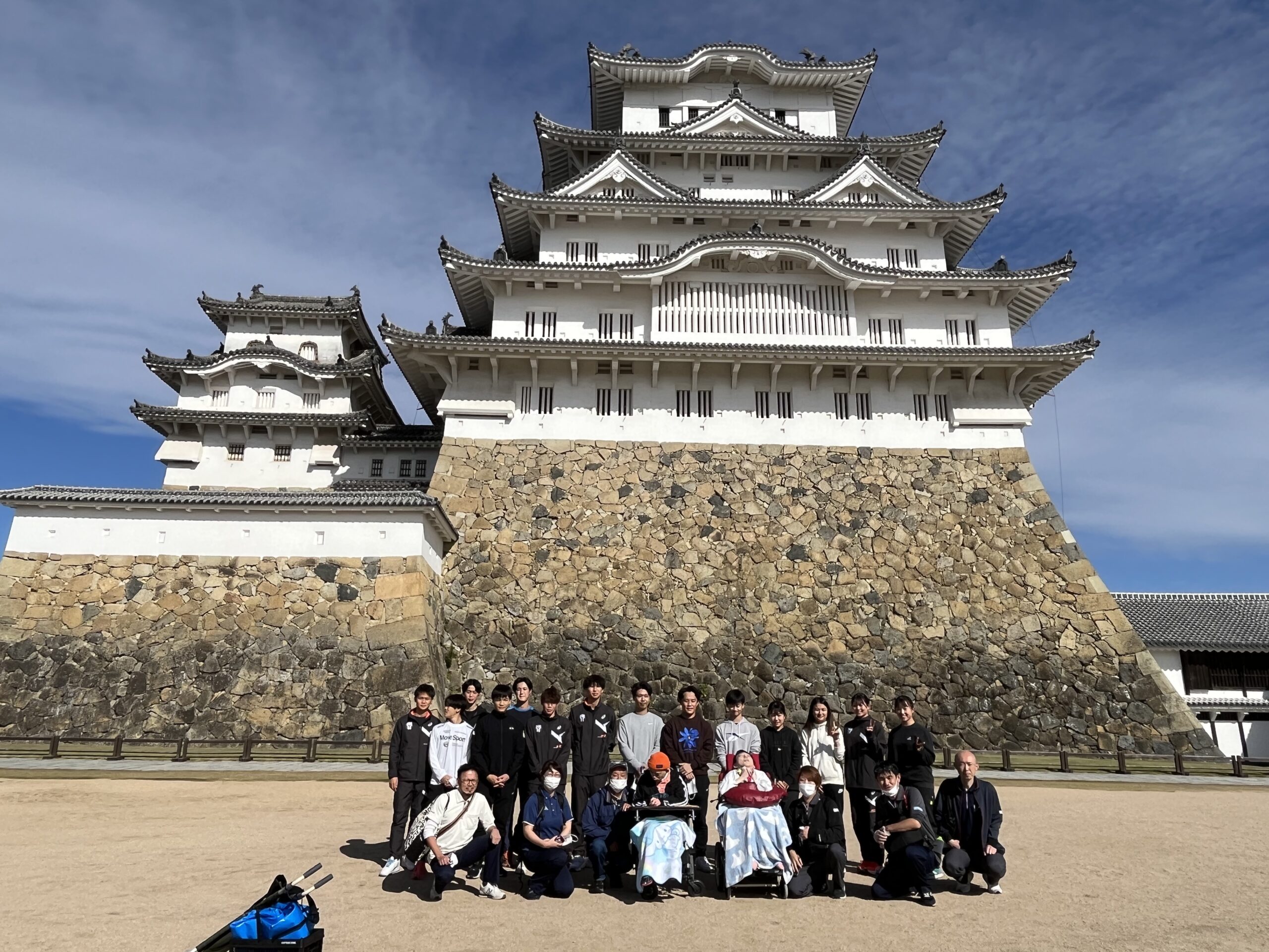 11/11(火)社会福祉学部2年生・熊野ゼミが、姫路聖マリア病院のルルド館に入所されている重度障害がある方たちと、一緒に姫路城大天守に登城する活動を行いました。
