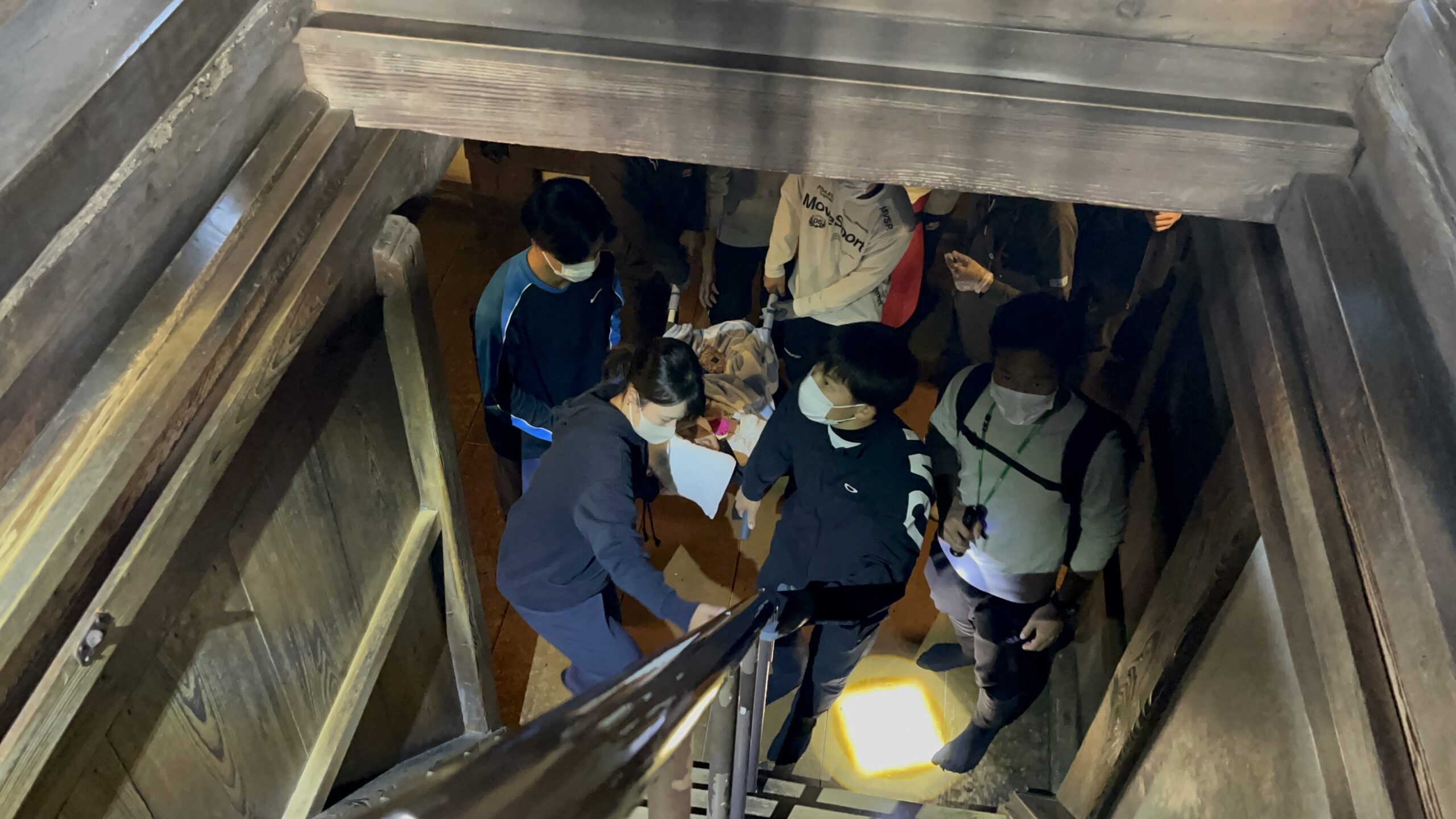 当日は天候にも恵まれ、観光客が多く城内は混雑していましたが、学生たちの積極的な声かけや、連携によって非常にスムーズに登城することができました!