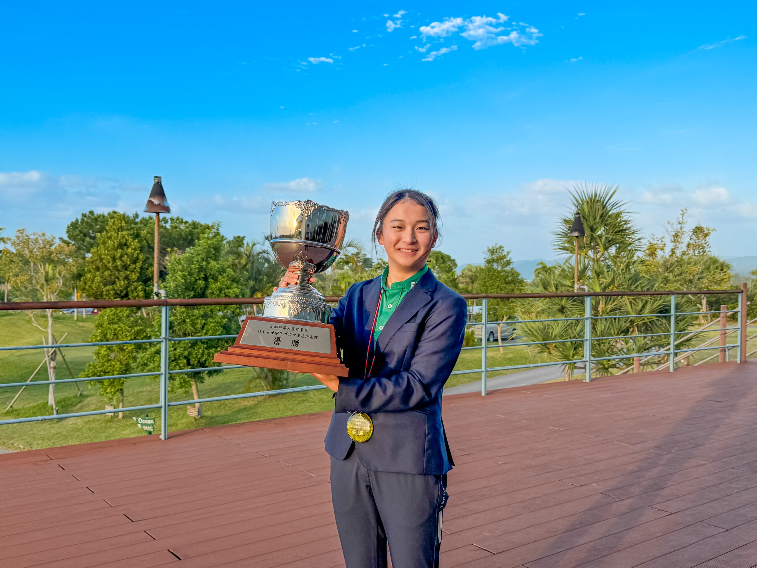 2025年11月25日(火)〜28日(金)の4日間、かねひで喜瀬カントリークラブ(沖縄県名護市)で開催された『文部科学大臣杯争奪 第8回日本女子学生ゴルフ王座決定戦』にて、創部1期生の河邉りえ(社会福祉学部2年)が見事優勝し、女子学生チャンピオンとなりました。