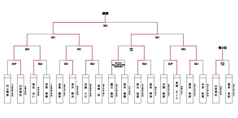 | 決勝 | 西山 知里 (東北福祉大学) | 3&2 河邉の勝利【優勝】 |