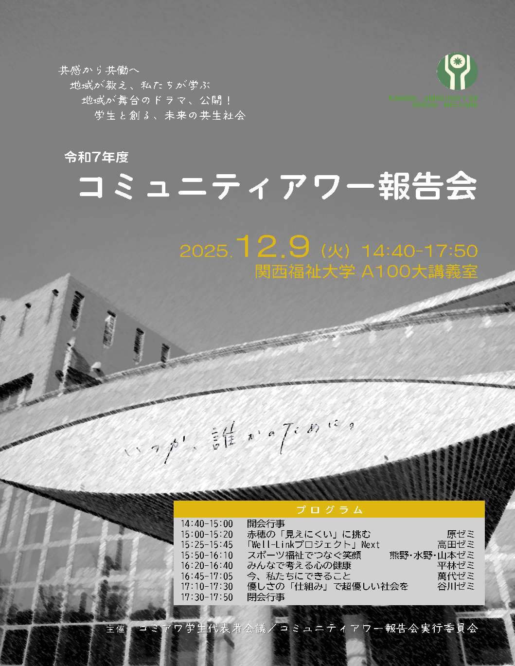 【社会福祉学科】2025年度コミュニティアワー報告会を12月9日に開催します(ご案内)